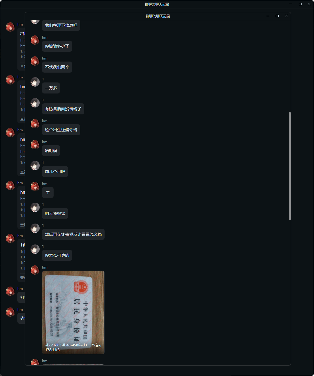 | 骗子/涉案人员QQ昵称: | War3-久卿、其他群id应该是顶着接单之类的旗号 |
