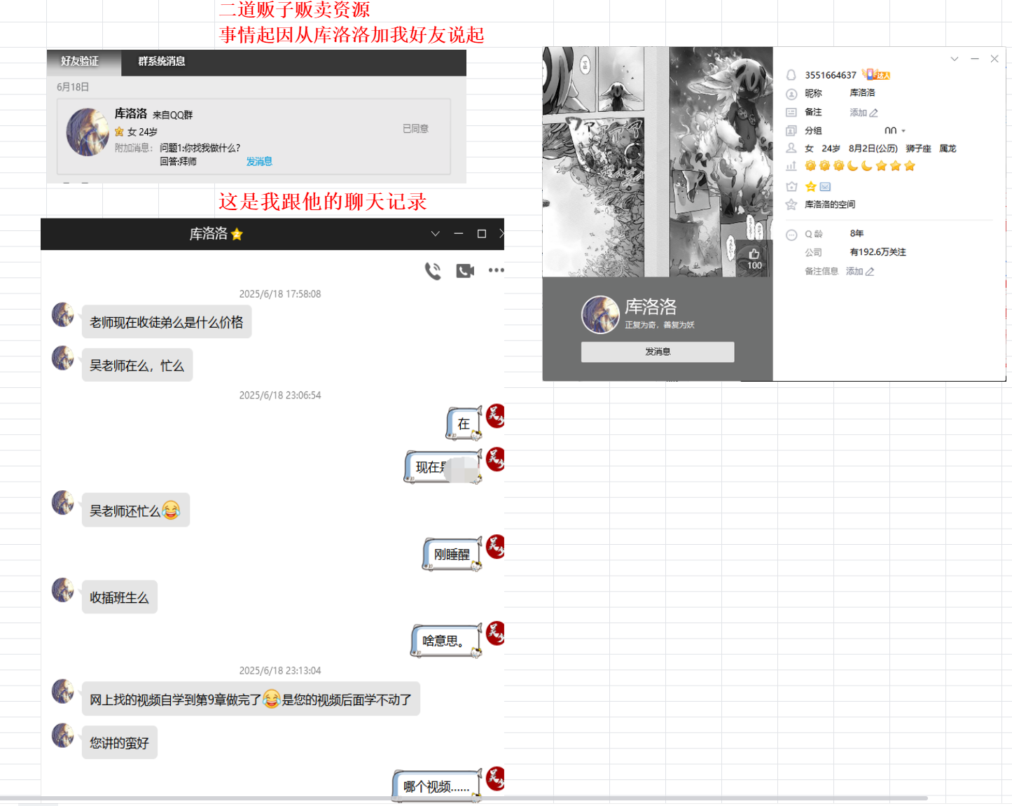 | 站长补充说明: | 据站长所知受害人其实之前也是个坑人的,卷了人家合作的图,自己发布之后不给人分成,这也算是天道好轮回了。 1350755675 1608258211 列表里有这2个QQ的注意一下,有知情人士提供线索,这2个疑似是落宸的小号。 |