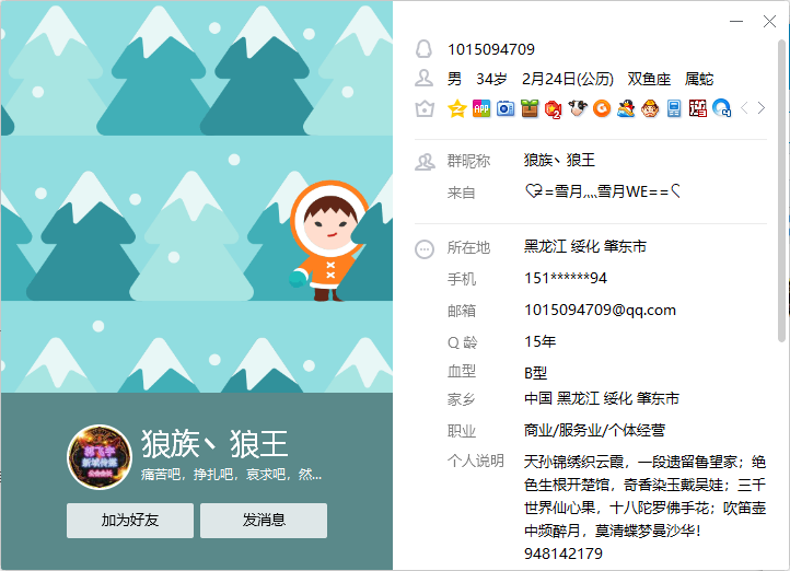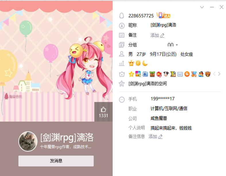 | 从何处认识: | QQ群(各种玩家群都曾有过他的踪迹) |