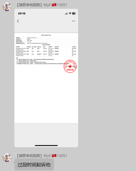| 骗骗子/涉案人员电话(由受害者自愿提交,真实性不保证): | 保护隐私,不公开 |